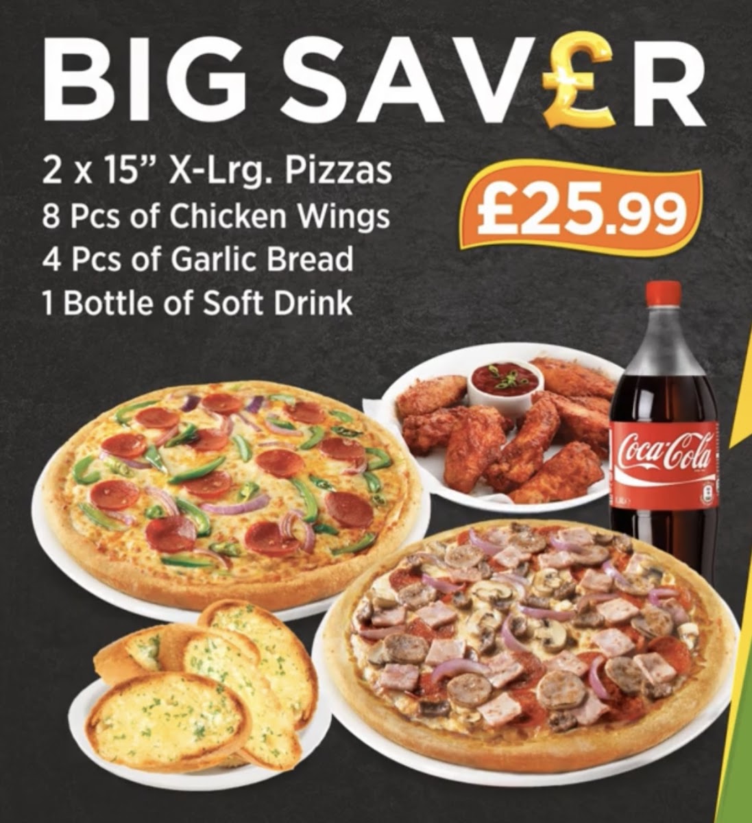The menu is thoughtfully curated, featuring classic offerings like the cornerstone extra-large super pizzas, alongside crisp salads such as Green Salad and Coleslaw. Pizza lovers will revel in menu deals like the Roma Winter Special, perfect for sharing with friends and family.